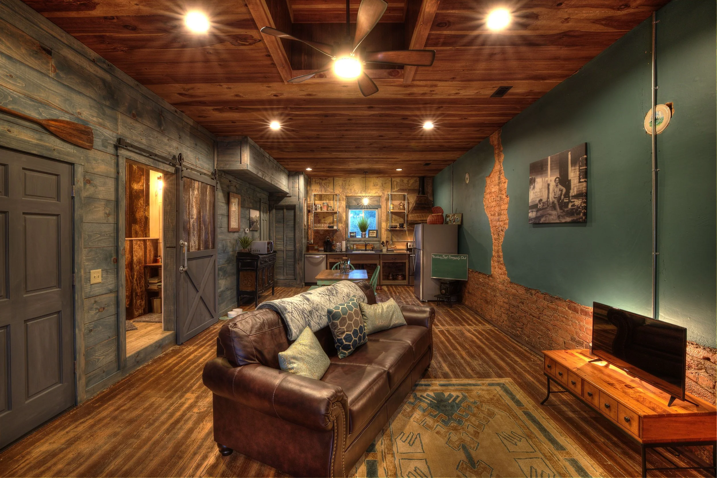 Entering into the Chattooga Studio of the Lofts Over Main, float down memory lane of old scenes from the original Nicholson Family homeplace on the Chattooga River from the early 1900's. Decor lends itself to an outdoor adventurers' oasis, also complete with authentic, local memorabilia.