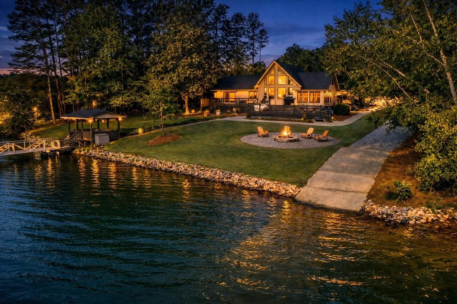 Located in Captains Cove and on big water of Lake Keowee, the Lake Keowee Retreat is the perfect family and friends getaway that offers lots of lake life fun. The Lake House comes with use of our private boat ramp and boat slip, paddle boards, life vests and floats, so bring your boat and bring your friends. You will be sure to have lots of fun. The Lake Keowee Retreat has a large back deck and fire pit patio that is perfect for watching the sunrise and conversations at sunset. You are sure to enjoy this beautiful gem located close to many things to do in Oconee County. For a more complete list of other local attractions such as hiking trails, waterfalls, and more, view our “Things to Do” page or send Meghan an email.